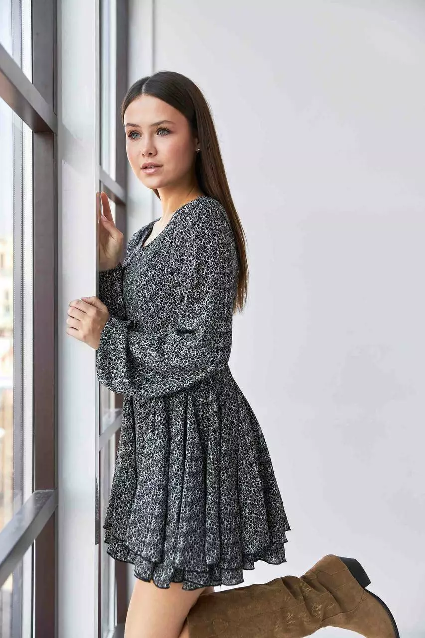 <p>Дуже стильна сукня з легкої тканини софт з красивим принтом та поясом у комплекті.<br />Верх сукні з акуратним круглим вирізом горловини і застібкою змійкою на спині. Довгий рукав понизу на резинці. Така сукня ніжна та нікого не залишить байдужим.</p>