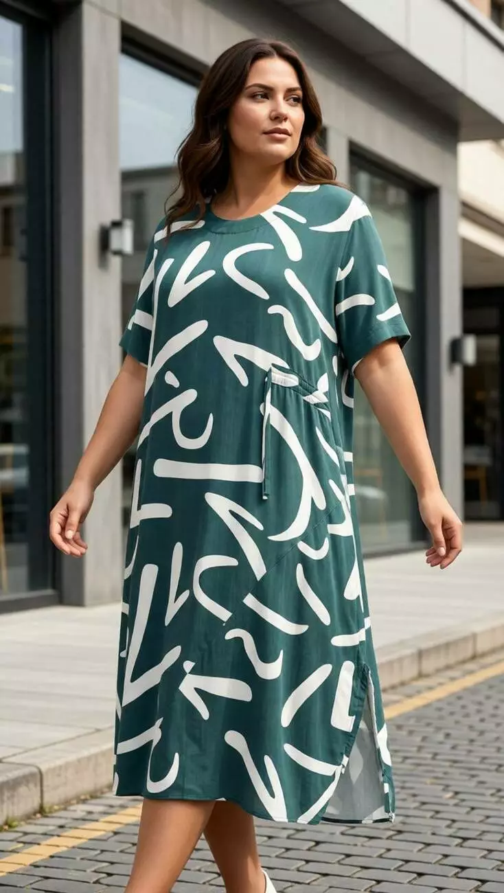 модному зеленому кольорі з сучасним принтом. Вільний крій