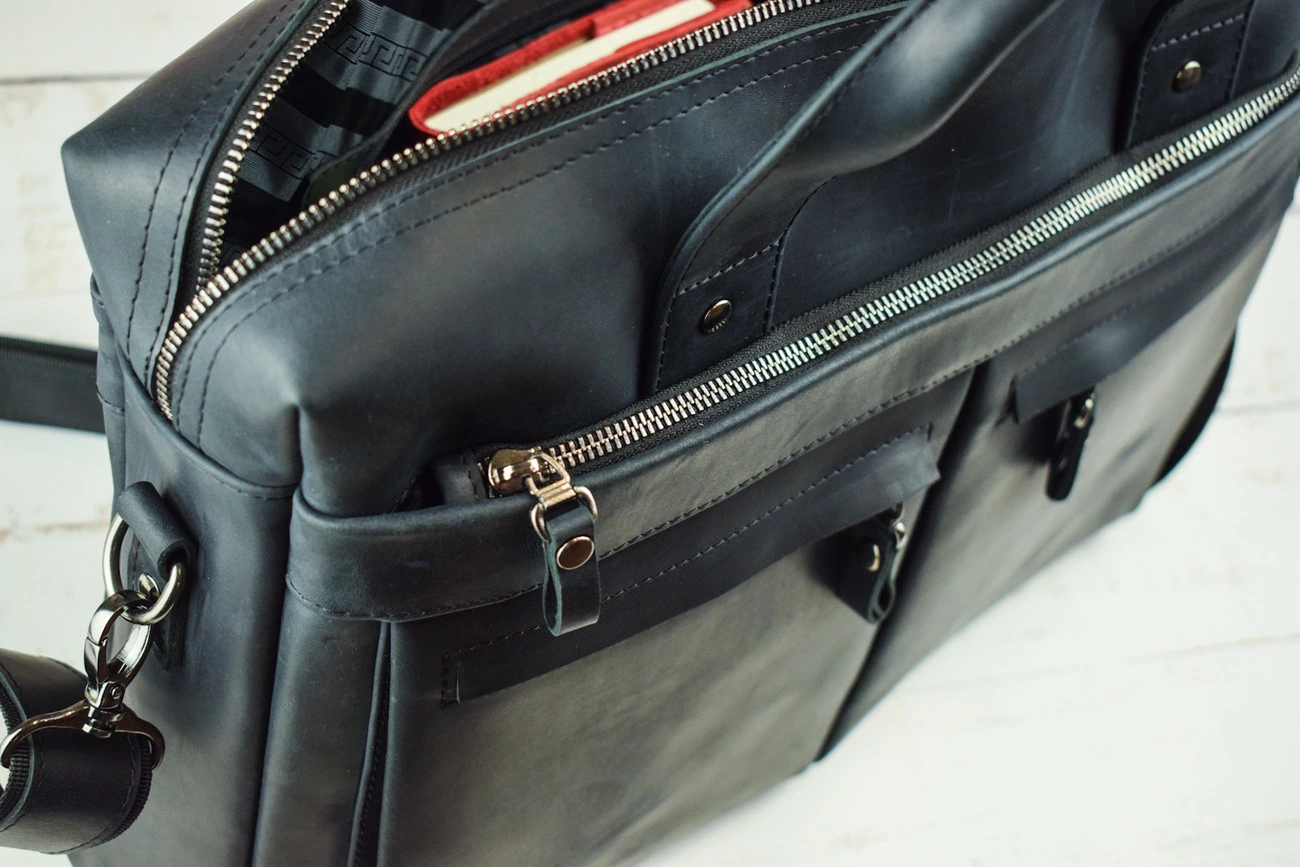 Універсальна сумка для 15-дюймових ноутбуків. Стінки з двох сторін ущільнені протиударним матеріалом. Усередині 1 основне відділення, відділення для ноутбука на липучці, кишеня на блискавці і дві відкриті кишені. На задній стінці кишеня на блискавці, на передній стінці велика кишеня і два меньші на блискавці .. Сумка оснащена короткими ручками і плечовим ременем, довжина якого розрахована на зріст 1.6-1.9 м. Ремінь на плече дубльований тканина / шкіра. Розміри : 40х28х7 см