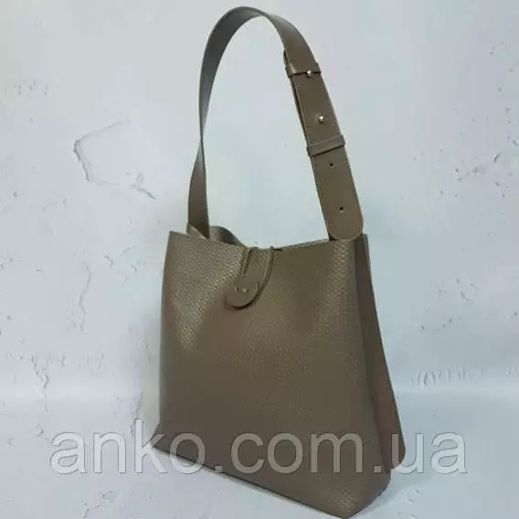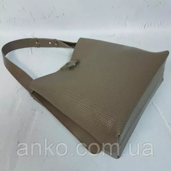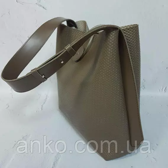 Сумка-шопер "Барбара" натуральная кожа, капучино матовая с тиснением под плетенку