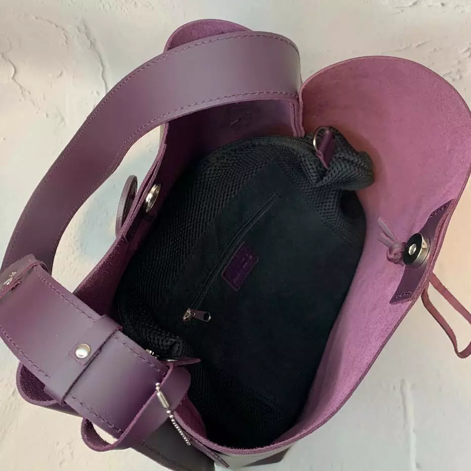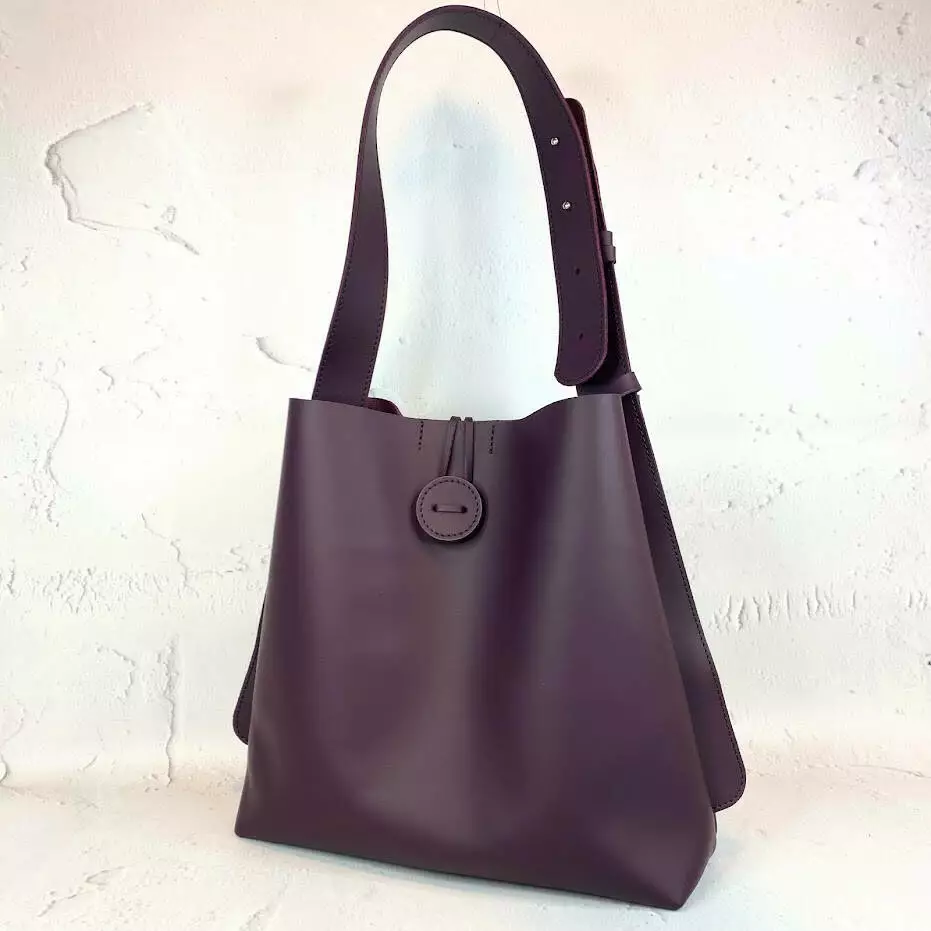 Сумка-шопер "Барбара" натуральная кожа, суперматовый баклажан