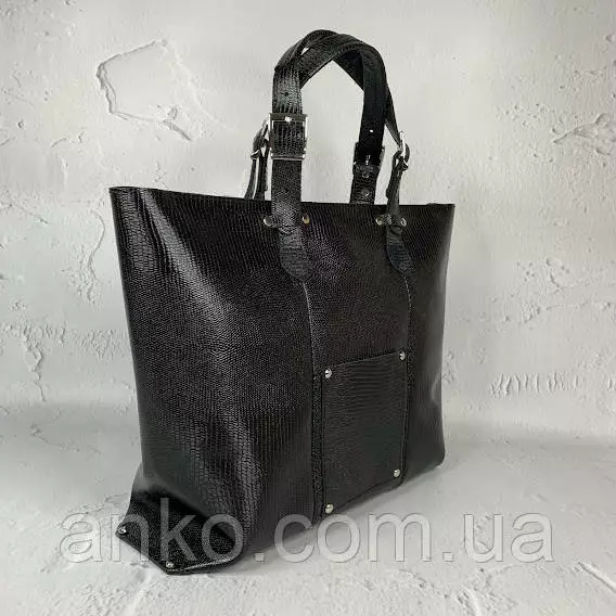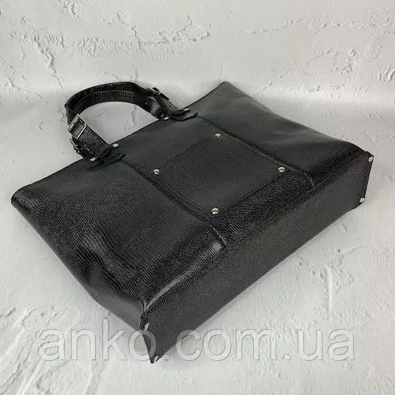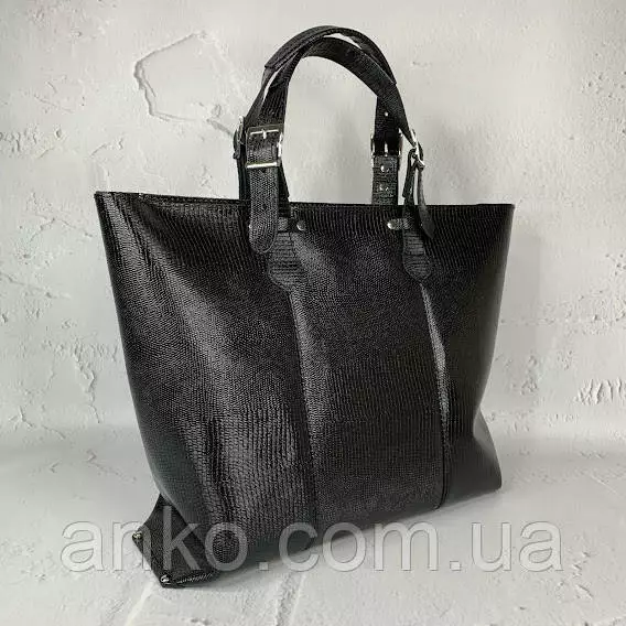 Сумка-шоппер "ЭЛИС" натуральная кожа, черная глянец с тиснением под рептилию