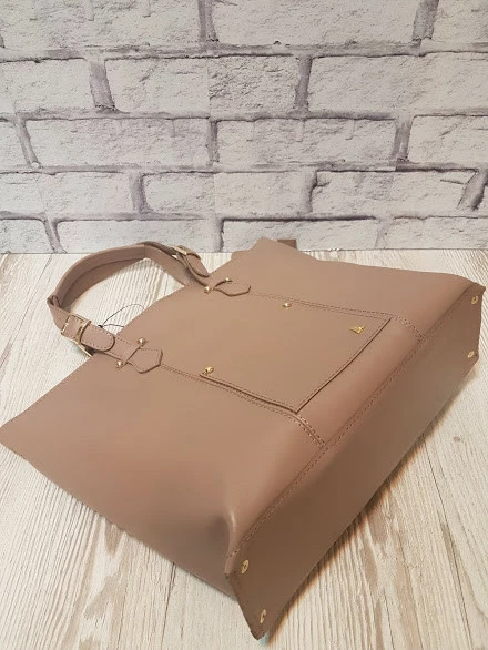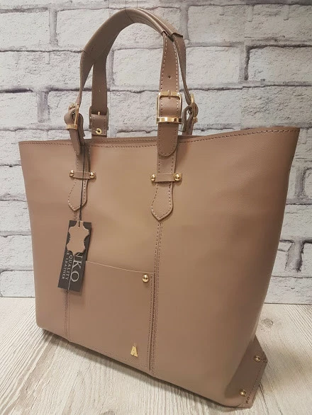Сумка-шоппер "ЭЛИС" натуральная кожа, латте матовая,на молнии