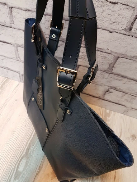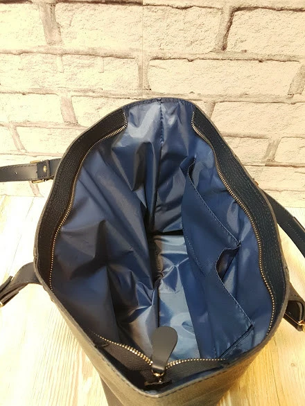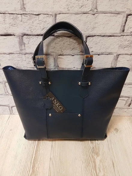 Сумка-шоппер "ЭЛИС" натуральная кожа,темно-синяя с рептилией, на молнии