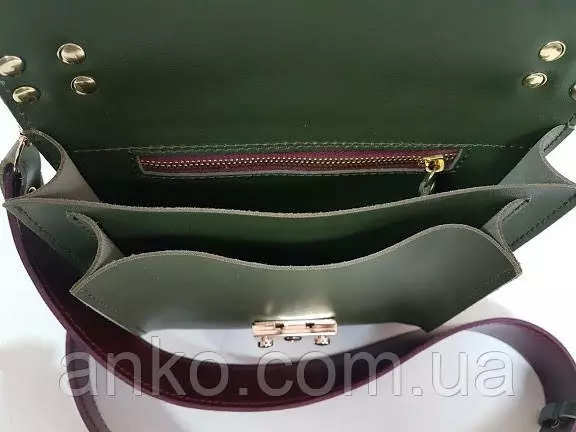 Сумочка закрывается на замок-защелку, имеет два отделения и