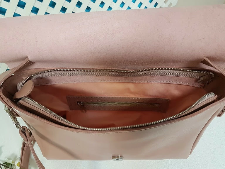 Внутри сумки имеется карман на молнии. Плечевой ремень двойной,