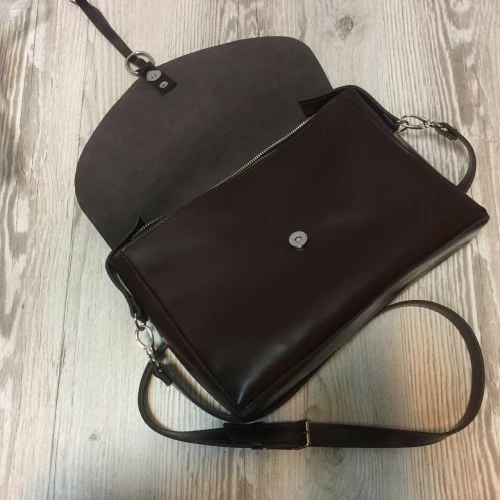 молнии на задней стенке сумки. Плечевой ремень двойной,