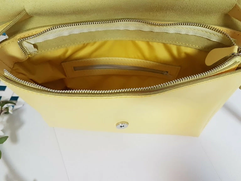 Внутри сумки имеется карман на молнии. Плечевой ремень двойной,