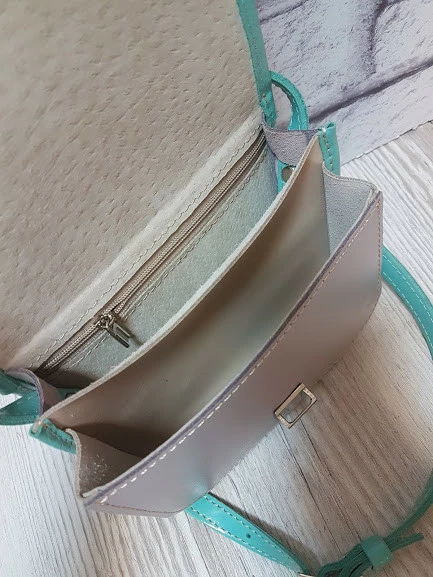 закрывается на маленький портфельный замочек. Ремешок сумки