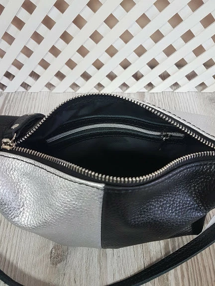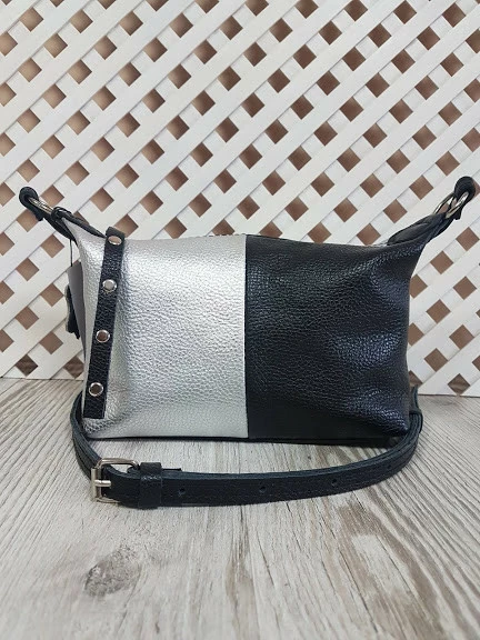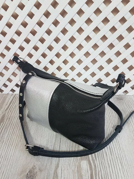 Сумка женская "Лилу" натуральная кожа, комбинированая черный и серебряный флотар