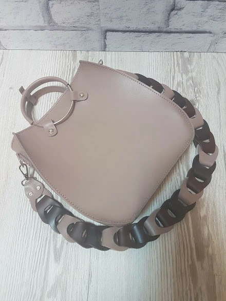 сумочки в необычной форме и ещё более необычном длинном ремне,