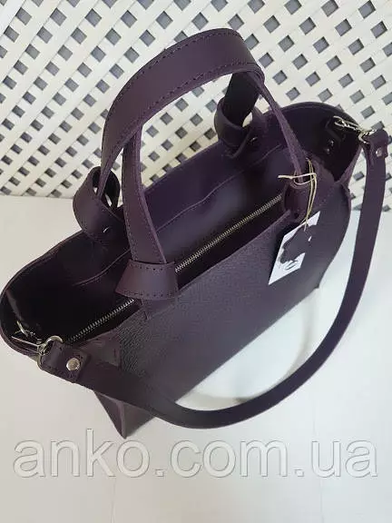 Сумка женская "ПРАГМА" натуральная кожа, баклажан с тиснением "жемчуг"