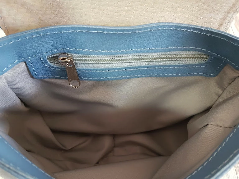 Сумка женская "Римини" натуральная кожа, голубая клапан плетенка