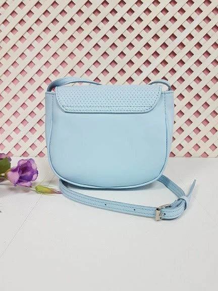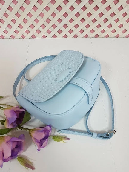Сумка женская "Римини" натуральная кожа, небесно-голубая с плетенкой