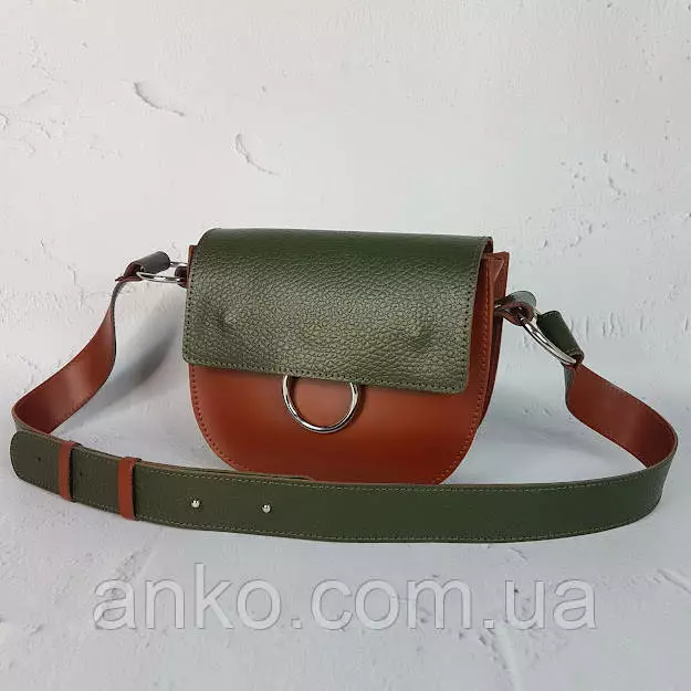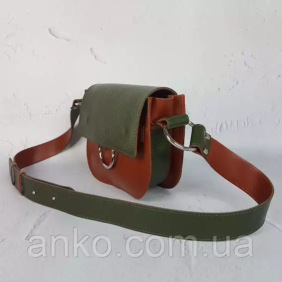 Сумка женская "Рута" натуральная кожа, хаки/гончарная глина