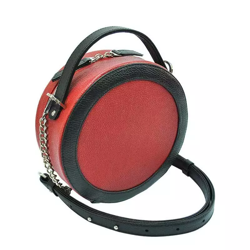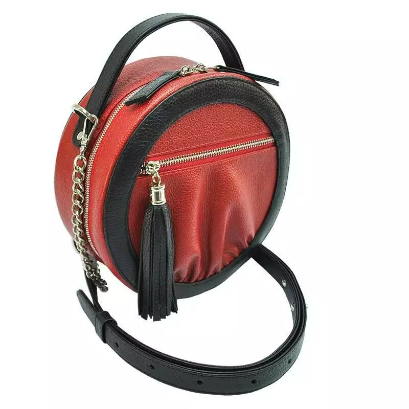 Шкіряна сумка пошита з натуральної шкіри флотар червоного кольору з комбінацією чорного.