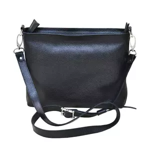 Шкіряна жіноча сумка через плече "Кросбоді" з натуральної шкіри флотар чорного кольору.