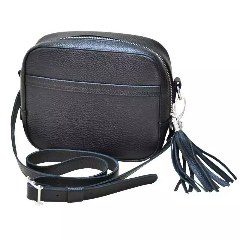 Шкіряна сумка через плече пошита з натуральної шкіри флотар чорного кольору.