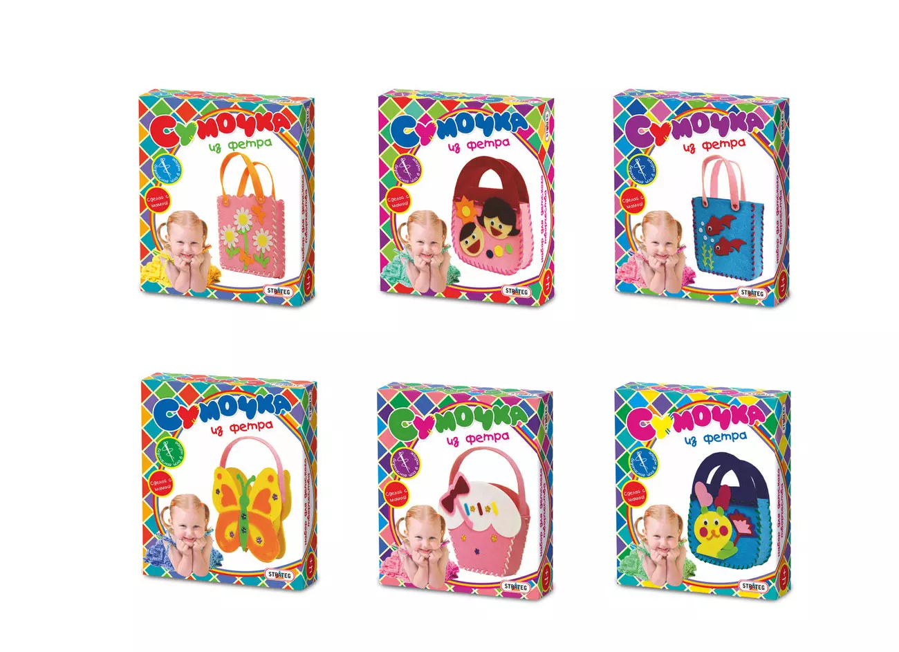 Сумочка з фетру "MIX 6 видів" (рос.), в кор-ке 22см-18,5 см-5см