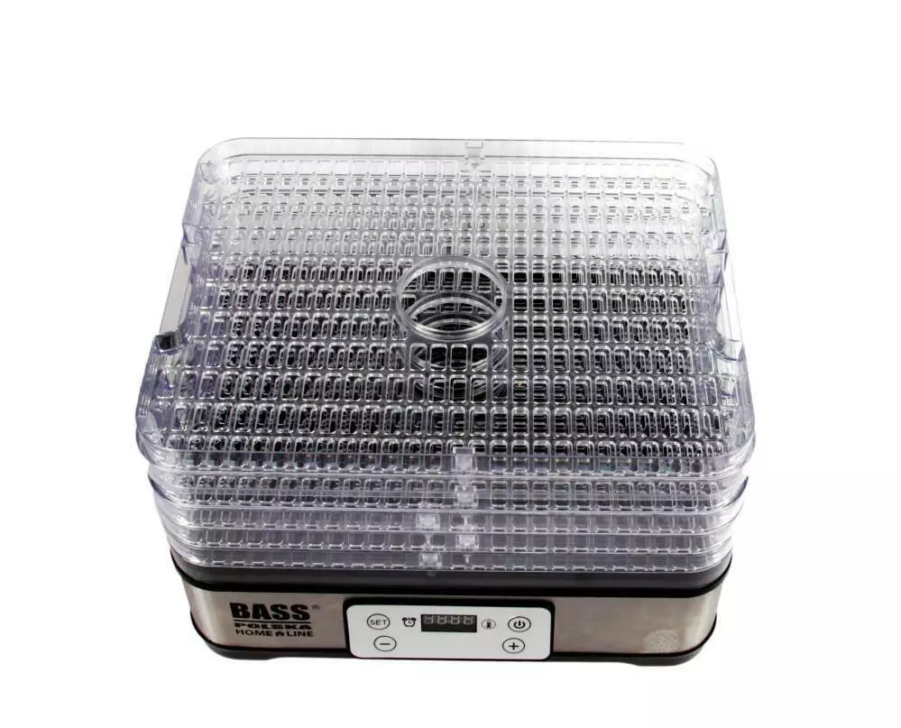 Сушарка для овочів та фруктів 300 Вт, з регульованими лотками Електрична сушарка для грибів, фруктів та овочів з регульованою висотою підносів та таймером Потужність: 300 Вт Діапазон температур: 35-70 °C Місце сушіння: сито/лоток Кількість сит/лотків: 5 Регулювання висоти сит/лотків: ТАК Регулювання висоти сит/лотків у діапазоні: 1,5 – 3 см. Таймер: 30 хвилин - 24 години Захист від перегріву: ТАК Переваги електричної сушарки BASS POLSKA П'ять знімних лотків, висоту яких можна вільно регулювати. Вбудований таймер дозволяє встановити оптимальний час сушіння продуктів. Сенсорна панель дозволяє легко та швидко налаштувати параметри. Виготовлений із екологічно чистого матеріалу, що не містить BPA. Чохол від комах та пилу. Компактний розмір. Тиха робота. Захист від перегріву забезпечує тривалий процес сушіння. Це дозволяє легко та ефективно зберігати продукти, зберігаючи смак та запах, а також харчову цінність сушених продуктів. Це дозволяє насолоджуватися смаком сушених фруктів, овочів, грибів та зелені цілий рік, без консервантів та штучних добавок. Це дозволяє насолоджуватися смаком сушених фруктів, овочів, грибів та зелені цілий рік, без консервантів та штучних добавок.