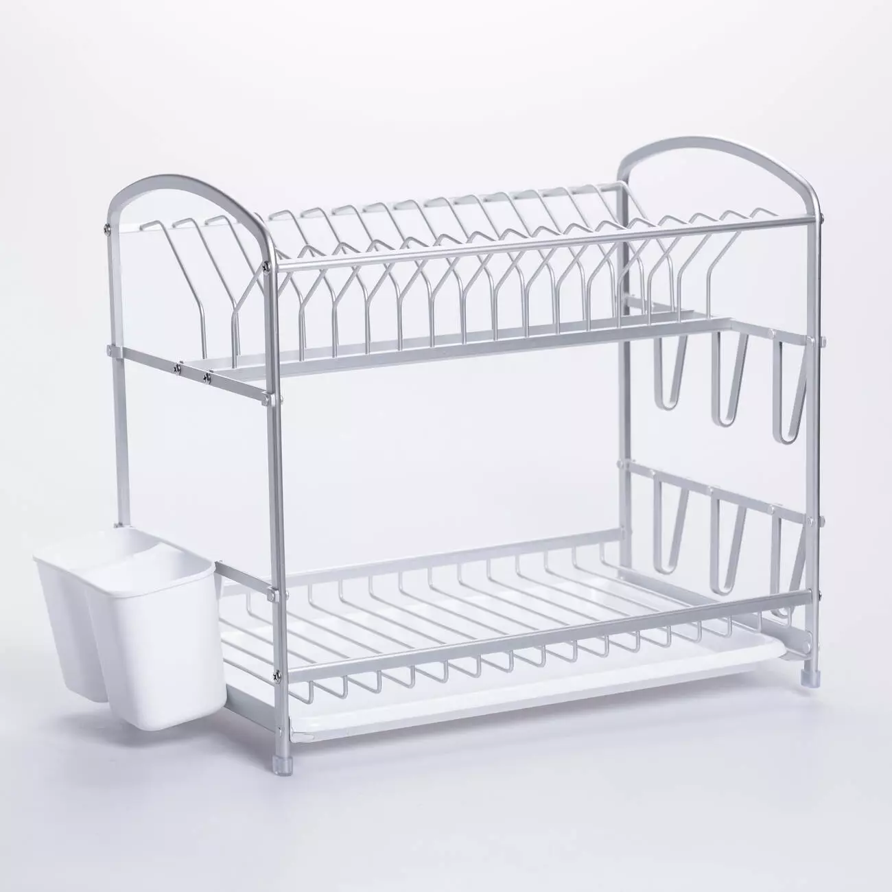 Стильна та функціональна дворівнева сушарка стане незамінним аксесуаром на будь-якій кухні. Вона поєднує в собі міцність металу та легкість догляду за пластиком, дозволяючи компактно розмістити велику кількість посуду. Ця сушарка - ідеальне поєднання довговічності, компактності та сучасного дизайну, яке допоможе підтримувати порядок на кухні.
