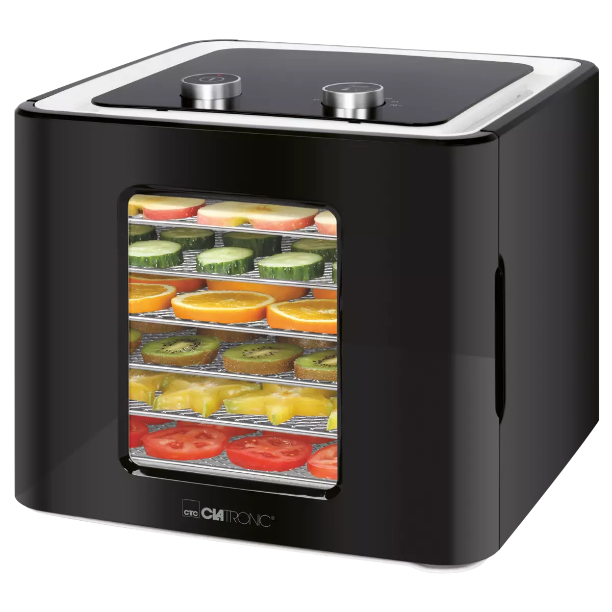 Очищення після процесу сушіння зовсім нескладне: 6 грат для зберігання з нержавіючої сталі та піддон для збору можна без проблем промити.