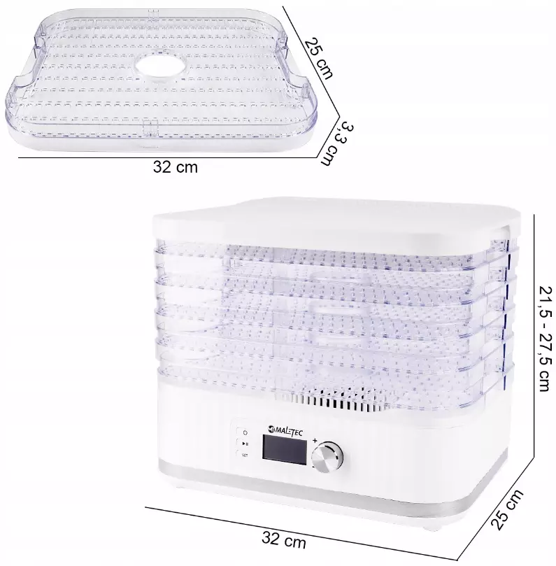 - До 5 больших сит, что дает общую площадь сушки 4000 см². Вы