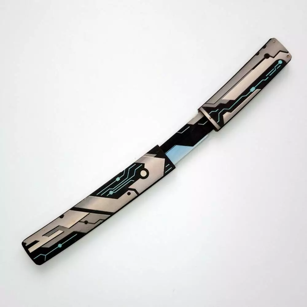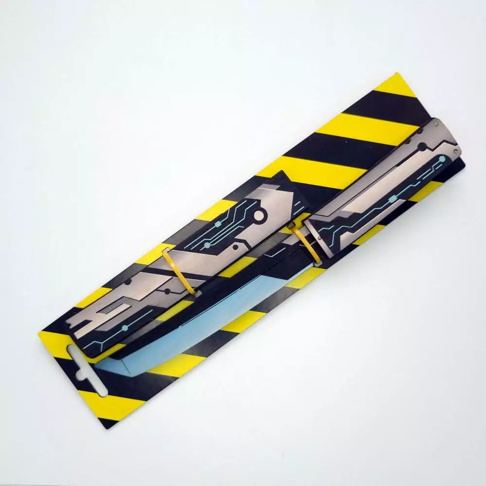 Ніж сувенірний TANTO ТРАНЗИСТОР. Матеріал: фанера. Довжина ножа – 28 см, ширина ручки – 3 см. Чудовий подарунок-сувенір. Ніж дерев'яний, якісний та міцний. Чи не заточений, гострі частини закруглені та зашліфовані, повністю безпечний. Лезо вкрите футуристичними візерунками. Для дітей віком від 6 років.