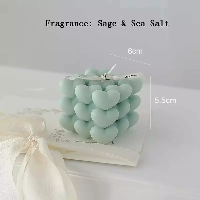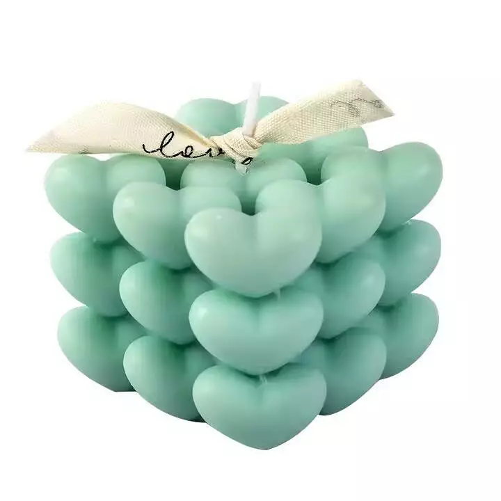 Свеча ручной работы в виде кубика сердец — это стильное дополнение