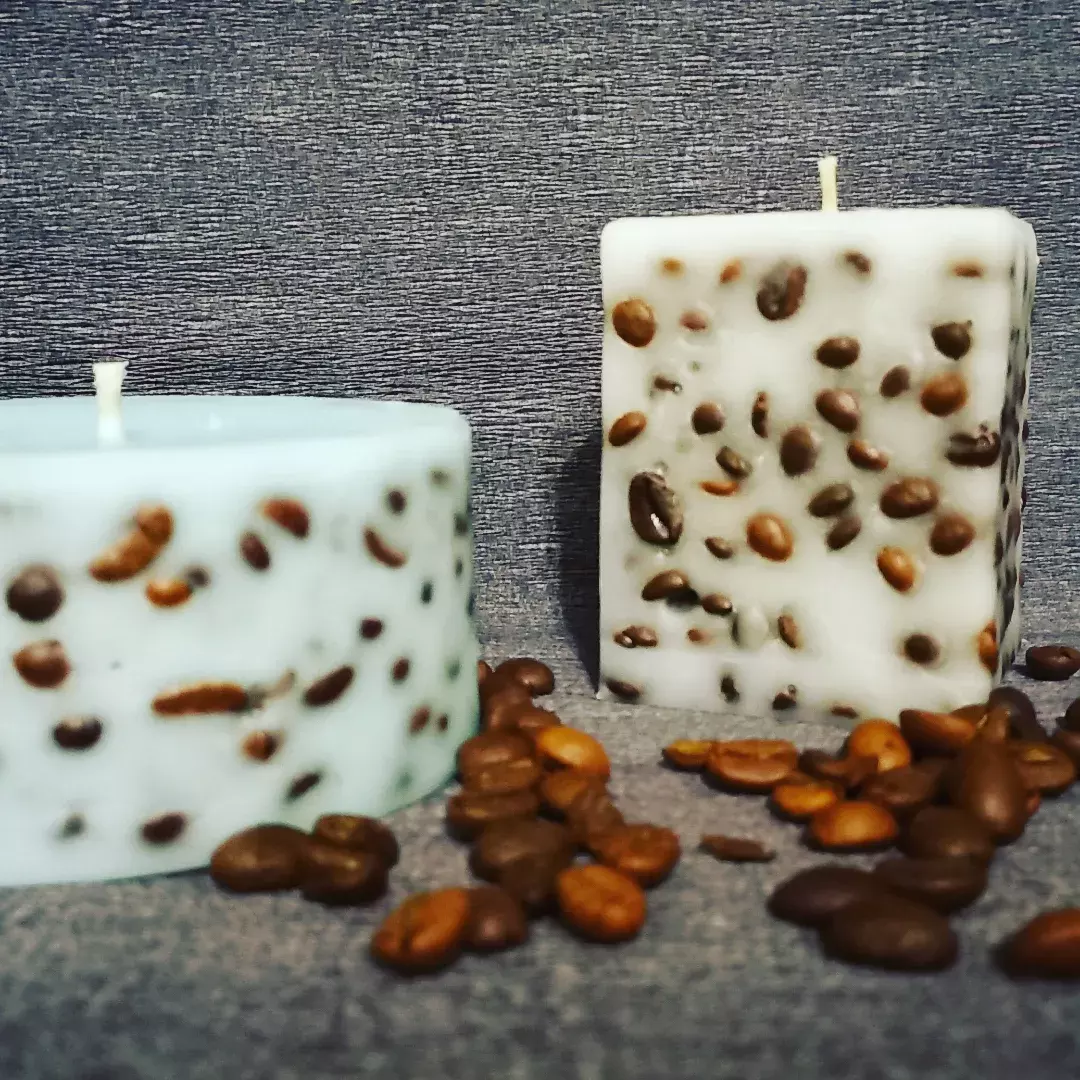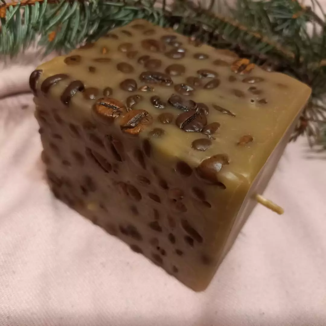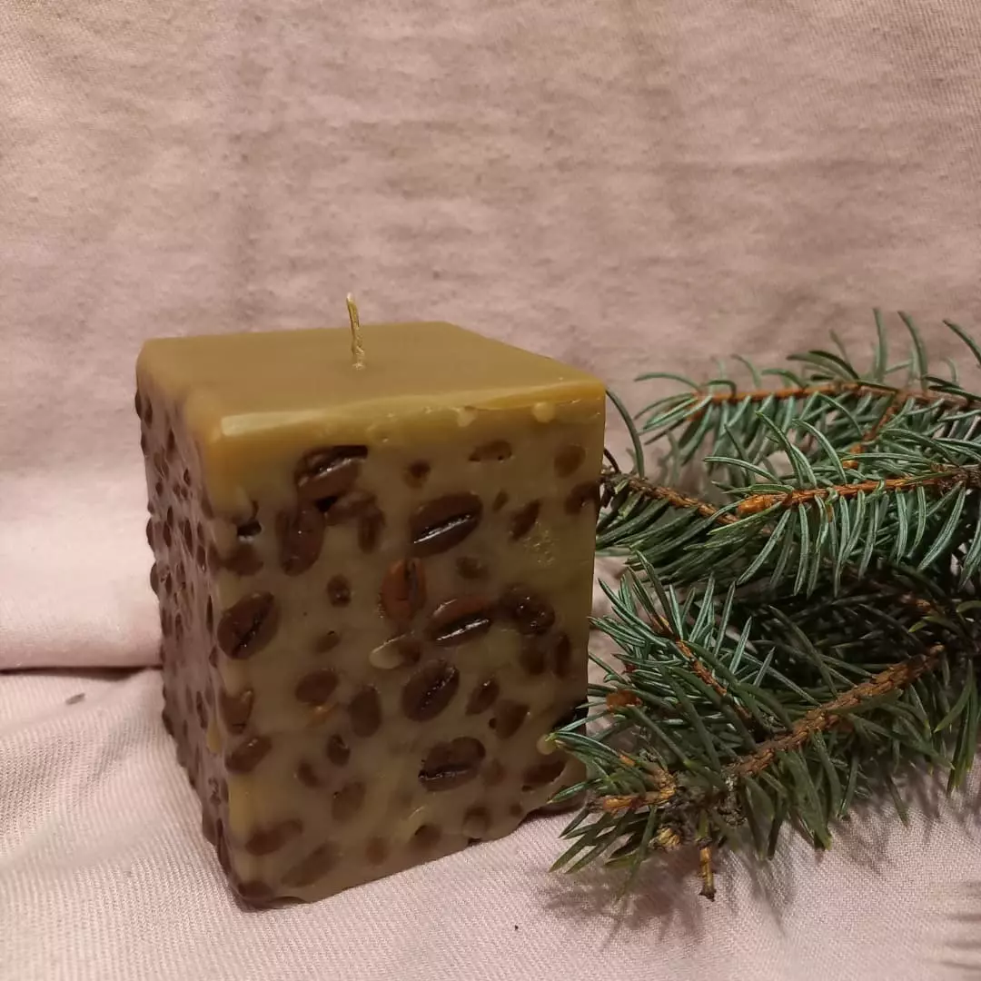 Свічка із зернами кави має неймовірний аромат. Виготовлена так,