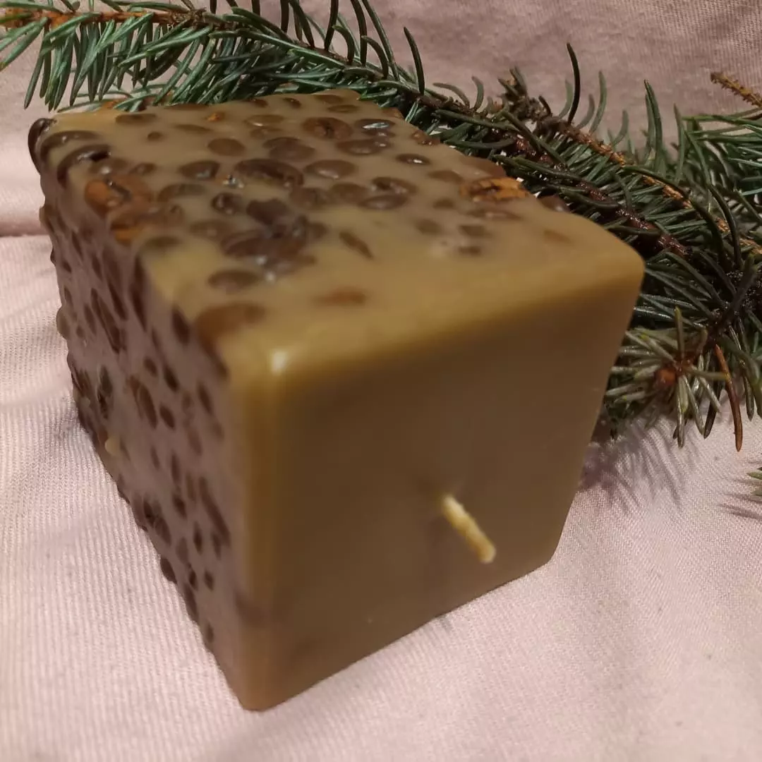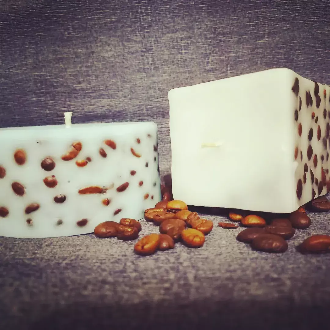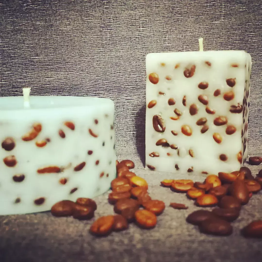 Свічка із зернами кави має неймовірний аромат. Виготовлена так,