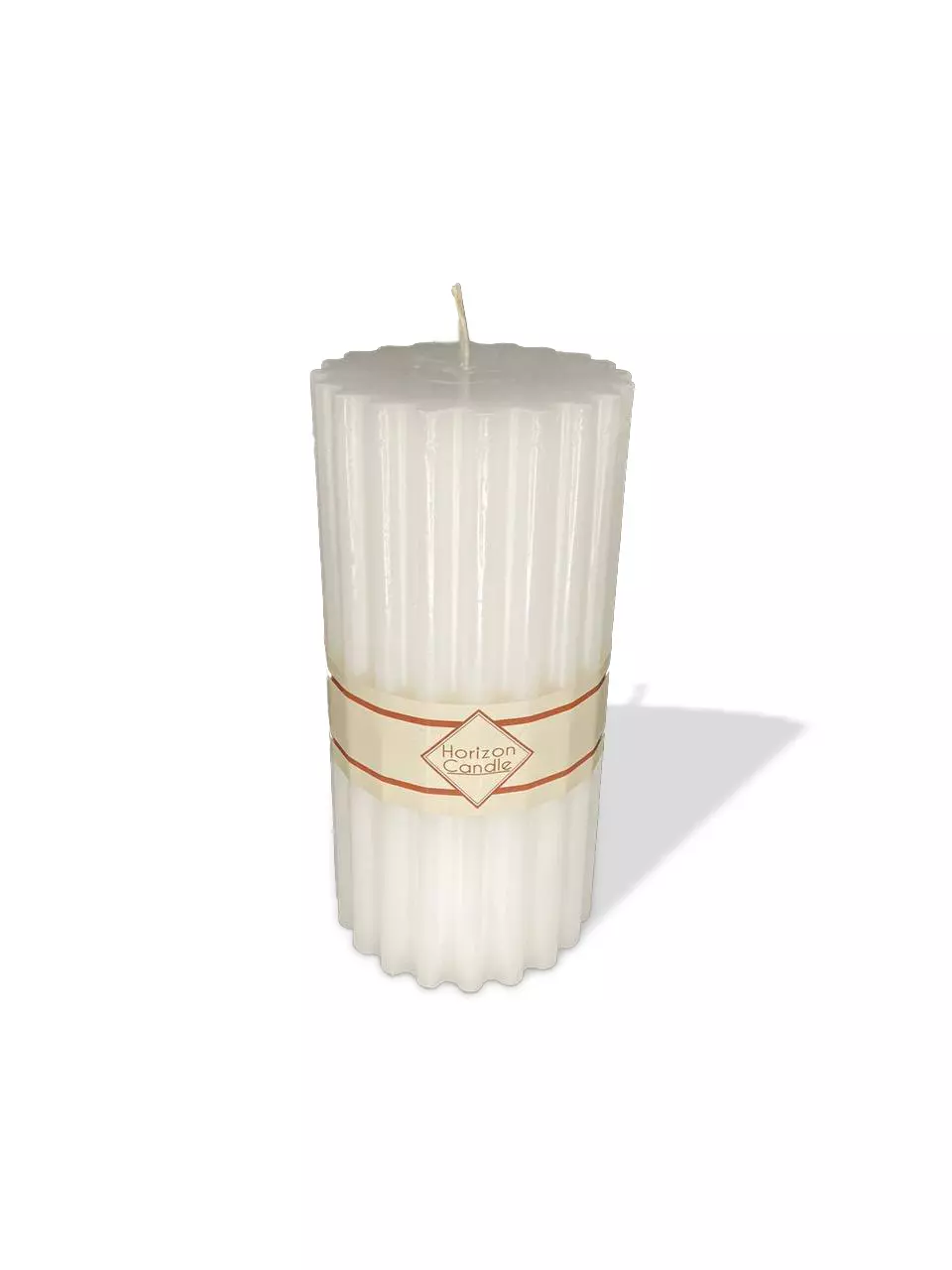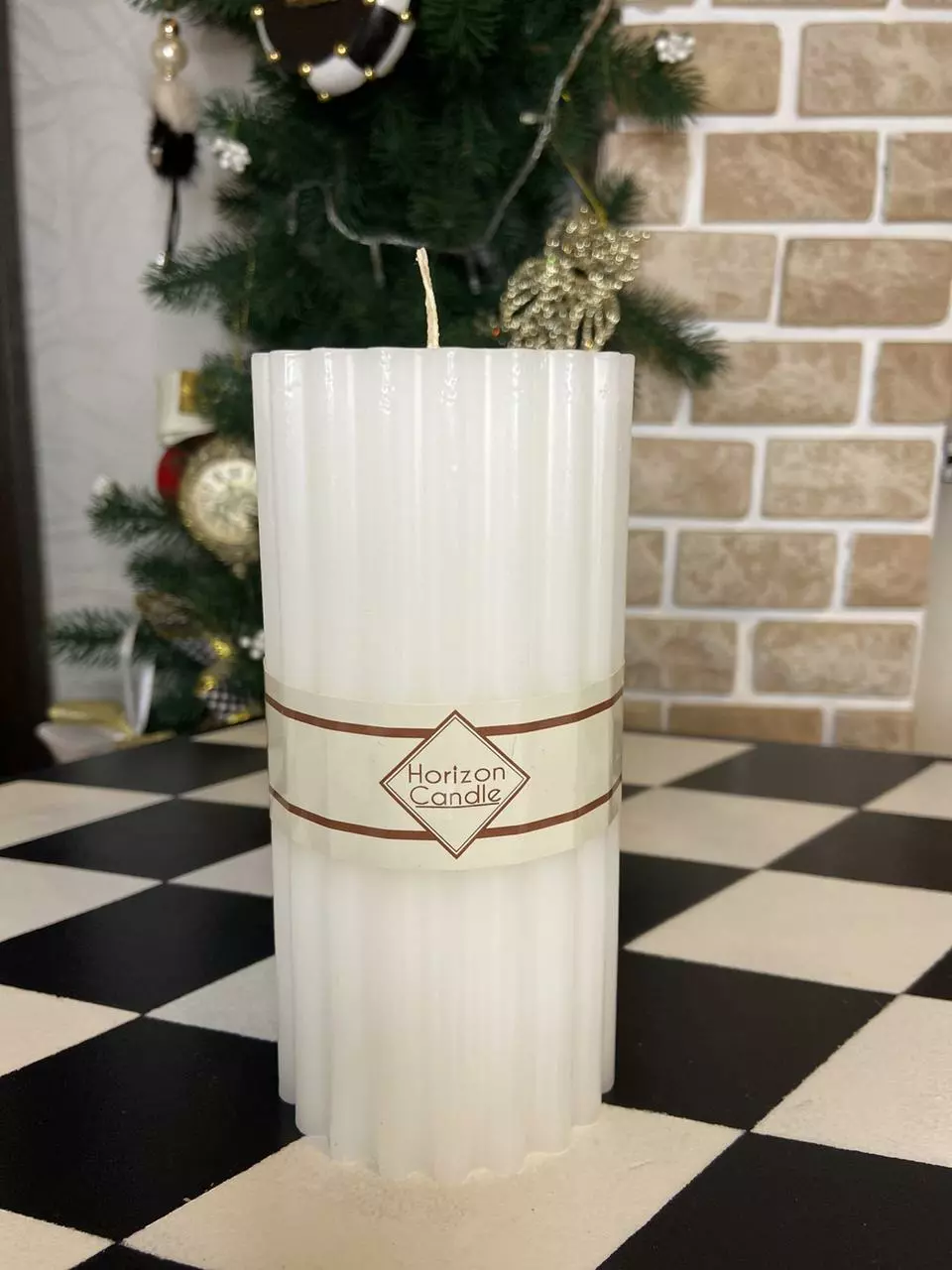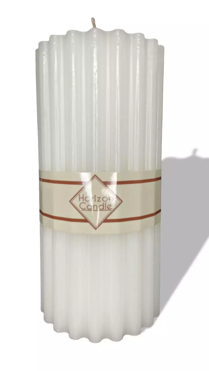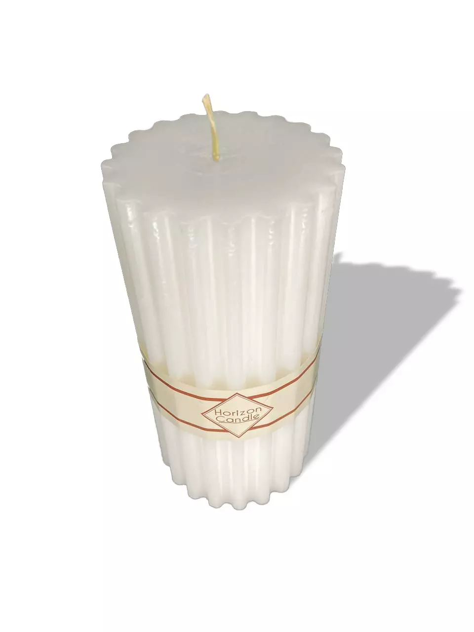 Свічка у формі циліндра, з оригінальними ребрами. Свічка білого