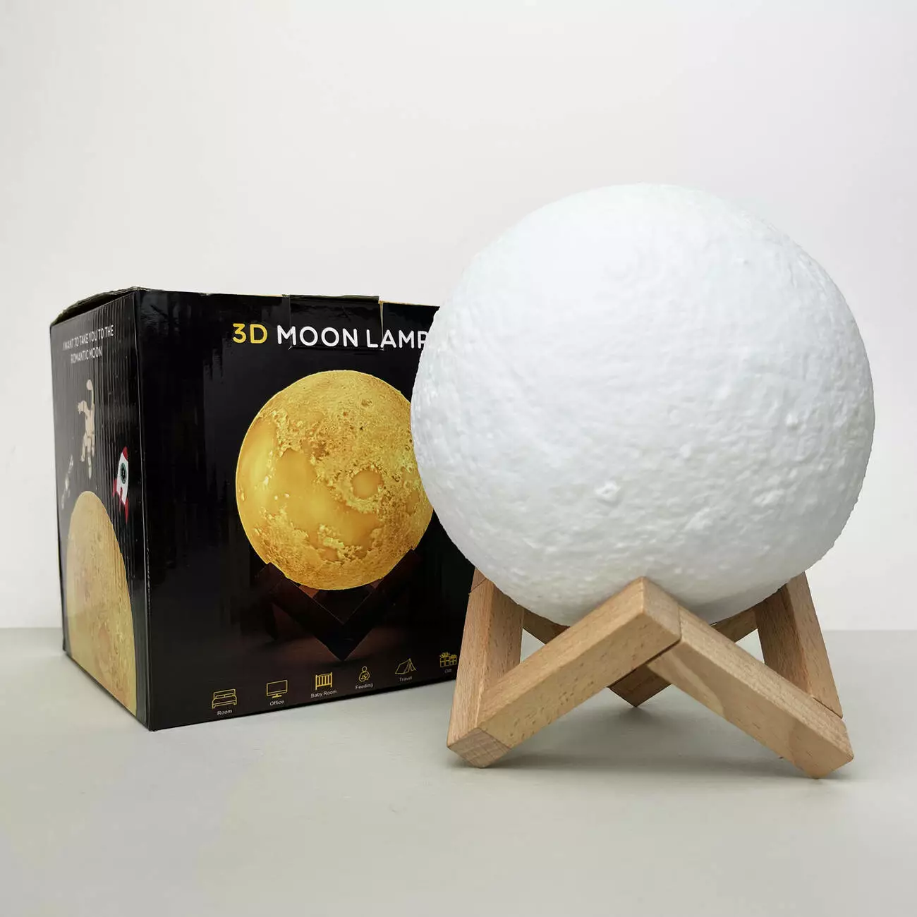 Светильник настольный луна 3D RGB - это уникальный декоративный аксессуар, который точно повторяет поверхность луны с реалистичной 3D-текстурой. Он создаст атмосферу уюта и волшебства в любом помещении. Возможность выбора разных режимов освещения и цветов с помощью сенсорного управления или пульта позволяет легко настраивать свет под настроение или обстановку. Встроенная батарея емкостью 300mAh обеспечивает до 12 часов работы без необходимости в частой подзарядке. Такой ночник станет идеальным дополнением к интерьеру не только спальни взрослых, но и в детской. И самые маленькие смогут спокойно засыпать под его светом.