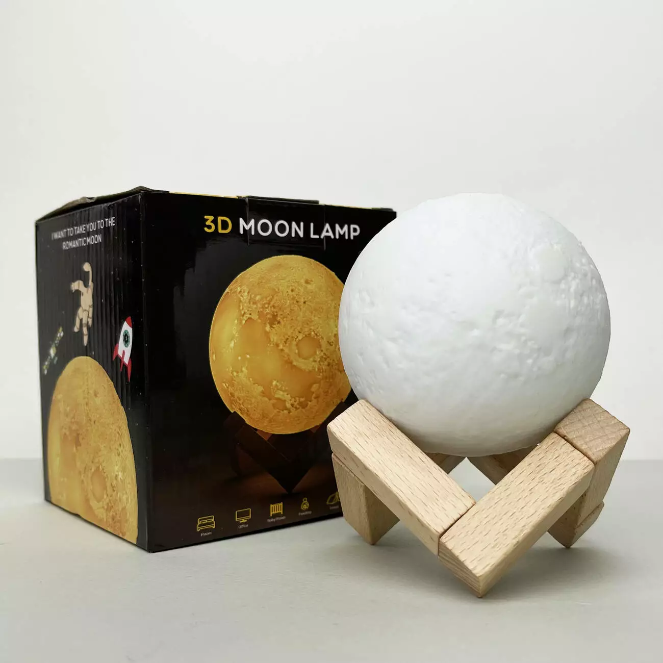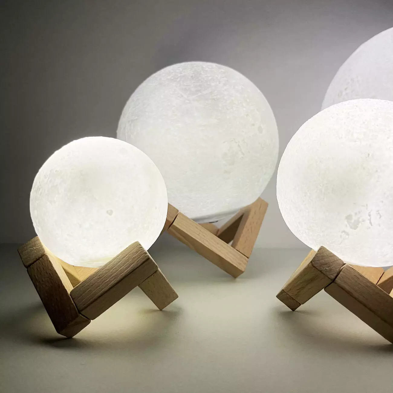 Светильник настольный луна 3D RGB - это уникальный декоративный аксессуар, который точно повторяет поверхность луны с реалистичной 3D-текстурой. Он создаст атмосферу уюта и волшебства в любом помещении. Возможность выбора разных режимов освещения и цветов с помощью сенсорного управления или пульта позволяет легко настраивать свет под настроение или обстановку. Встроенная батарея емкостью 300mAh обеспечивает до 12 часов работы без необходимости в частой подзарядке. Такой ночник станет идеальным дополнением к интерьеру не только спальни взрослых, но и в детской. И самые маленькие смогут спокойно засыпать под его светом.