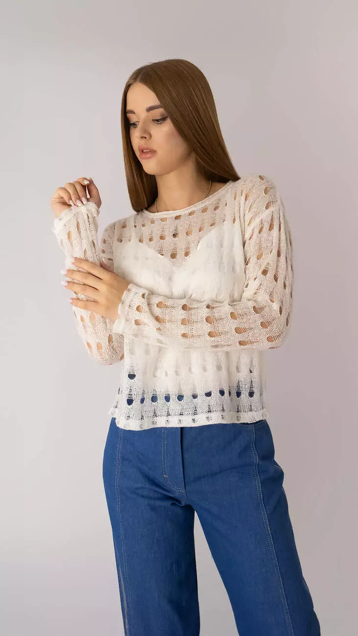 Ніжний светр Пір'їнка зшитий з італійської вовни, іде в комплекті з шовковим топом.
