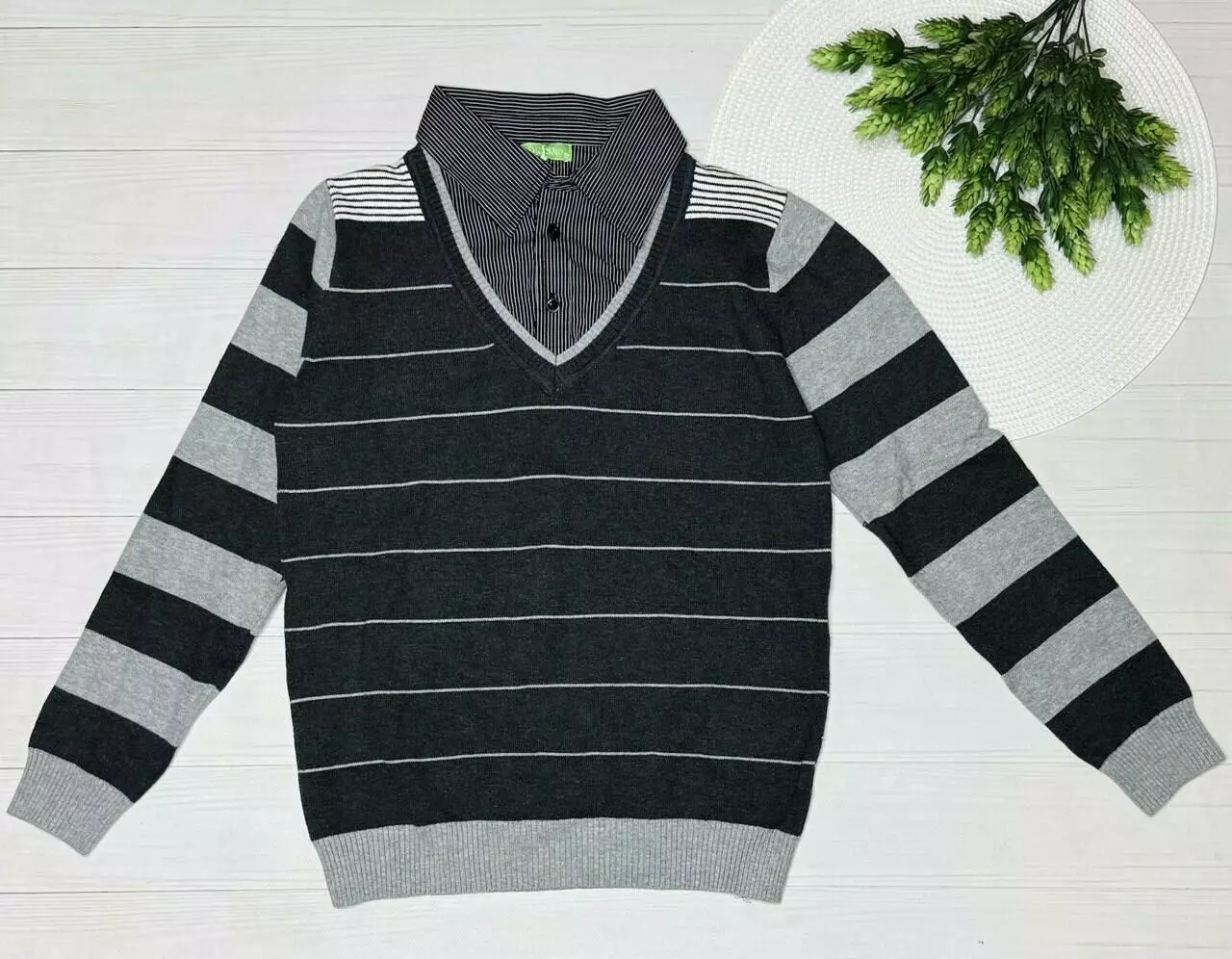 Светр з імітацією сорочки хлоп. Сірий 61153 MANY&MANY