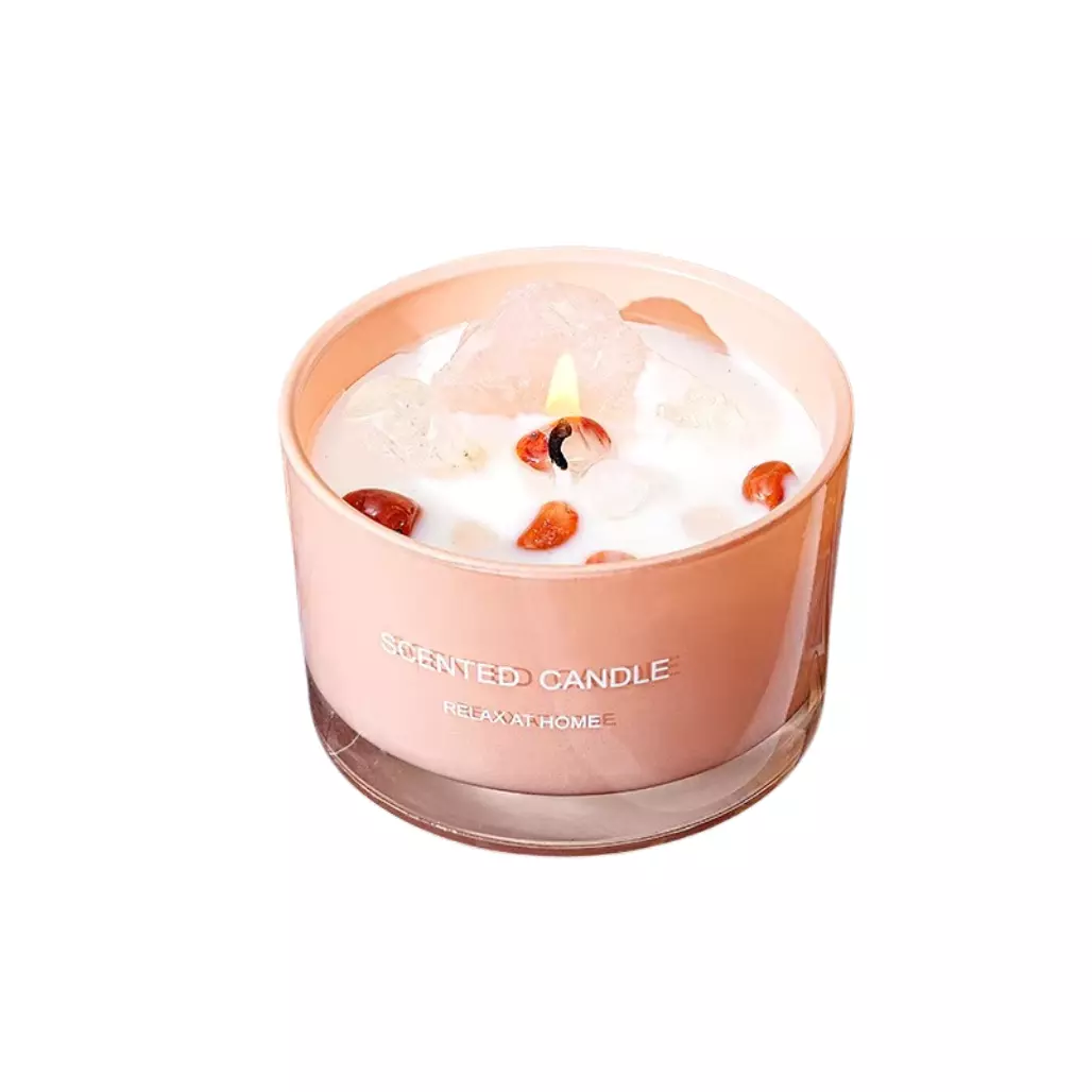 Свічка в скляній чаші з декором із кварцового каміння - це вишукана