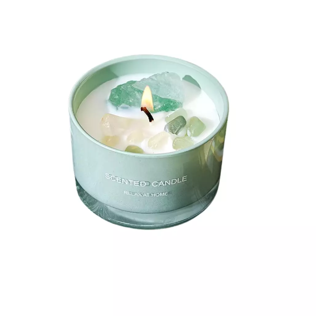 Свічка в скляній чаші з декором із кварцового каміння - це вишукана