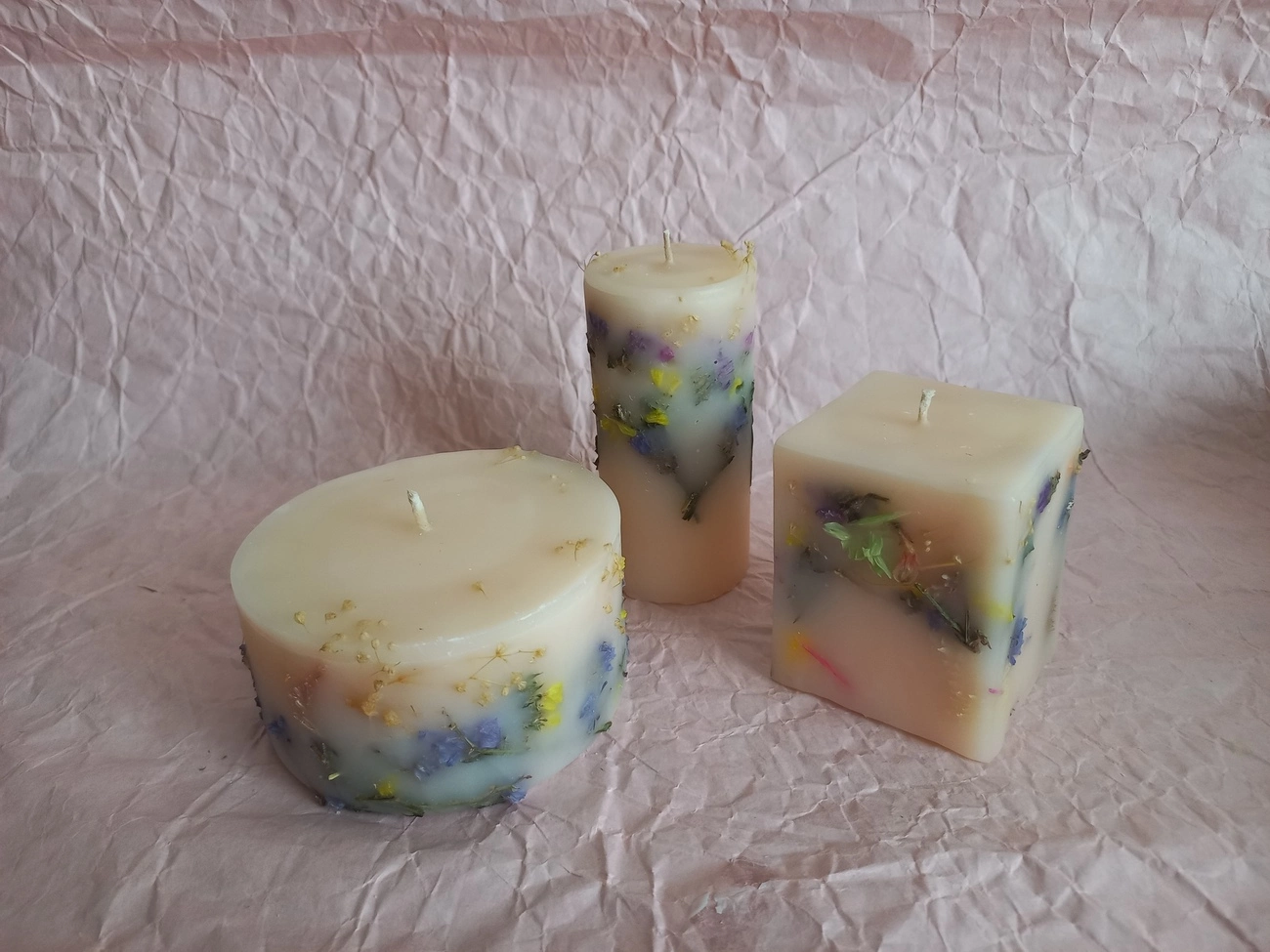 Набір із 3-х свічок, прикрашених натуральними сухоцвітами. Колір і аромат може бути різний.