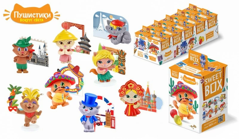 Картонная коробочка с игрушкой и мармеладом внутри. В каждой коробочке коллекционная флоковая 3Д игрушка "Пушистики" с пласмассовыми элементами в индивидуальном пакетике с дизайном и лифлетом. 8 игрушек в коллекции. К игрушке идет коллекционный лифлет. Лифлет лежит в пакетике с игрушкой. В каждой коробочке лежит 10 г мармелада с натуральным соком в герметичном пищевом пакетике с дизайном.