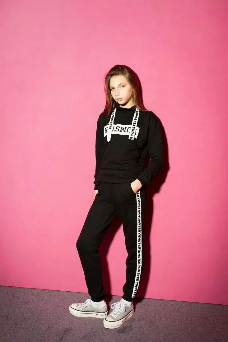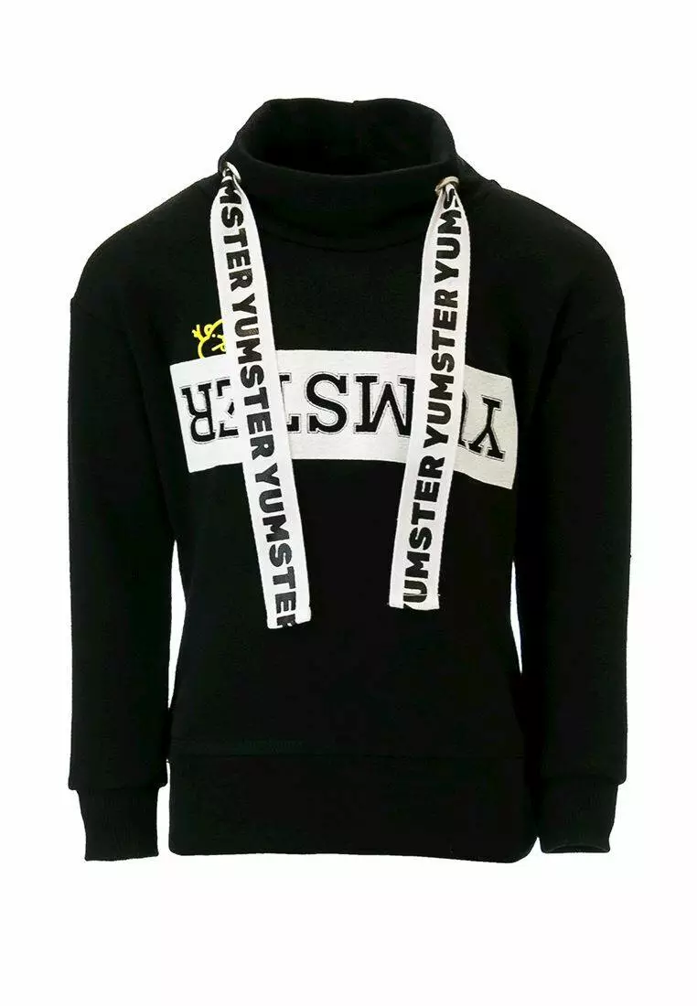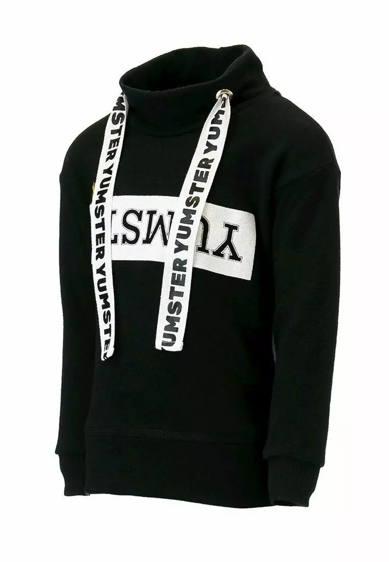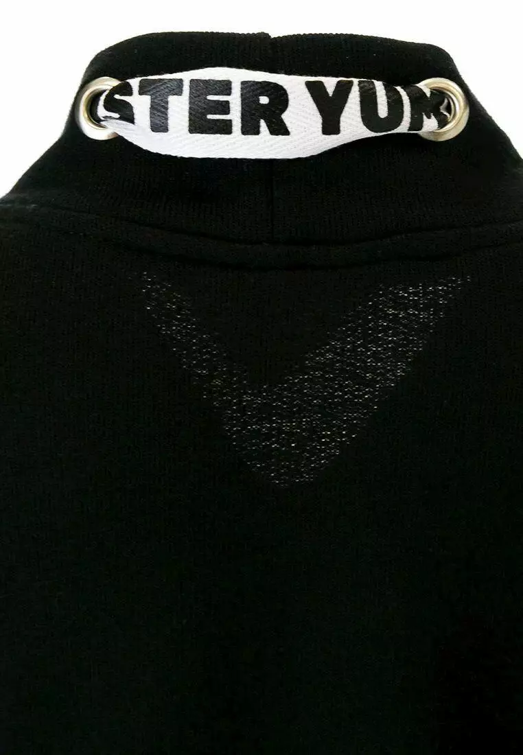 з резинкою на рукавах і подолі. Біла тасьма з принтом "Yumster".