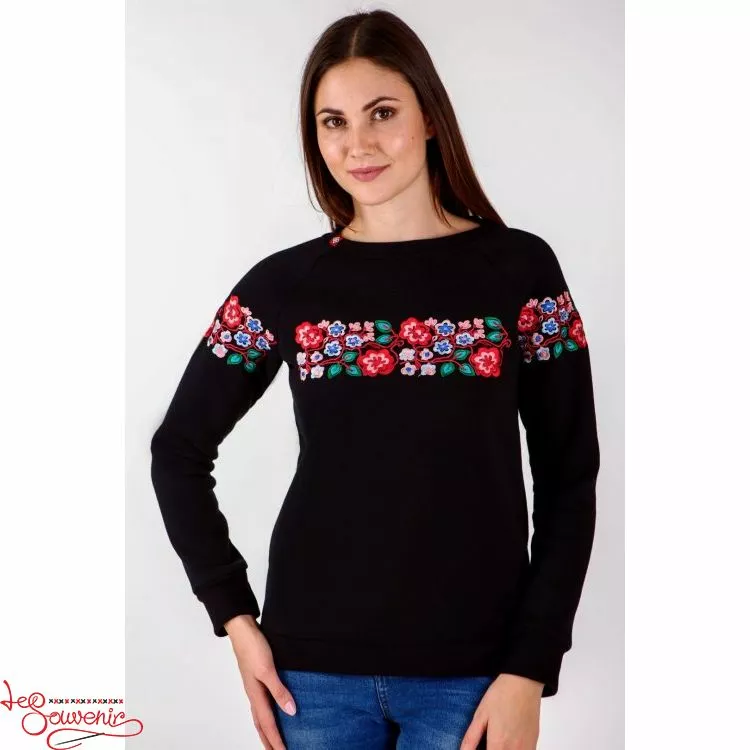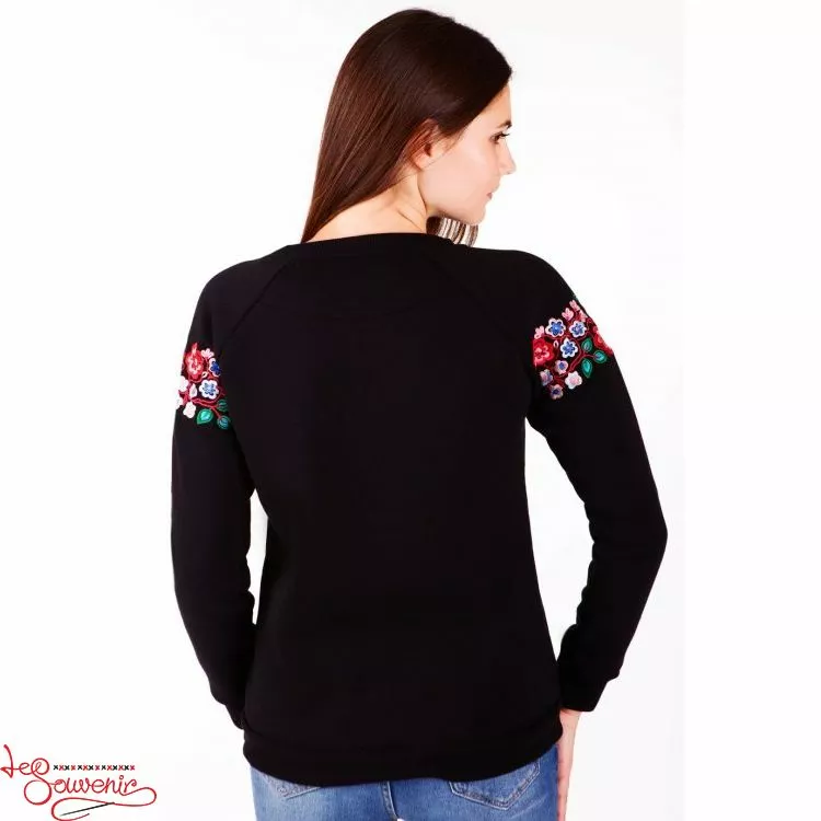 Жіночий стильний теплий світшот із яскравою квітковою вишивкою на чорному тлі від гуртівні Leosouvenir чудово зігріє Вас у холодну погоду.