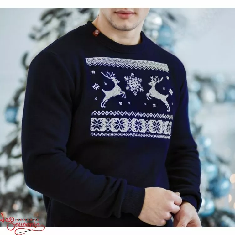 Чоловічий стильний теплий світшот із святковим зображенням на синьому тлі від гуртівні Leosouvenir чудово зігріє Вас у холодну погоду.