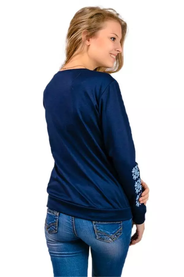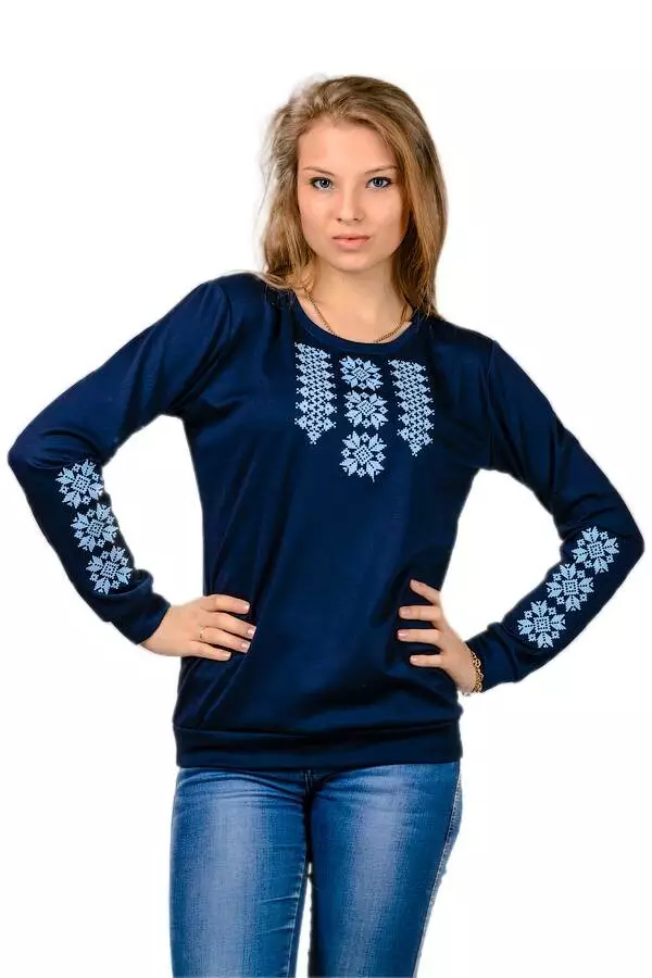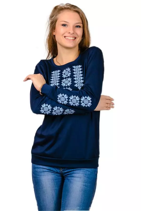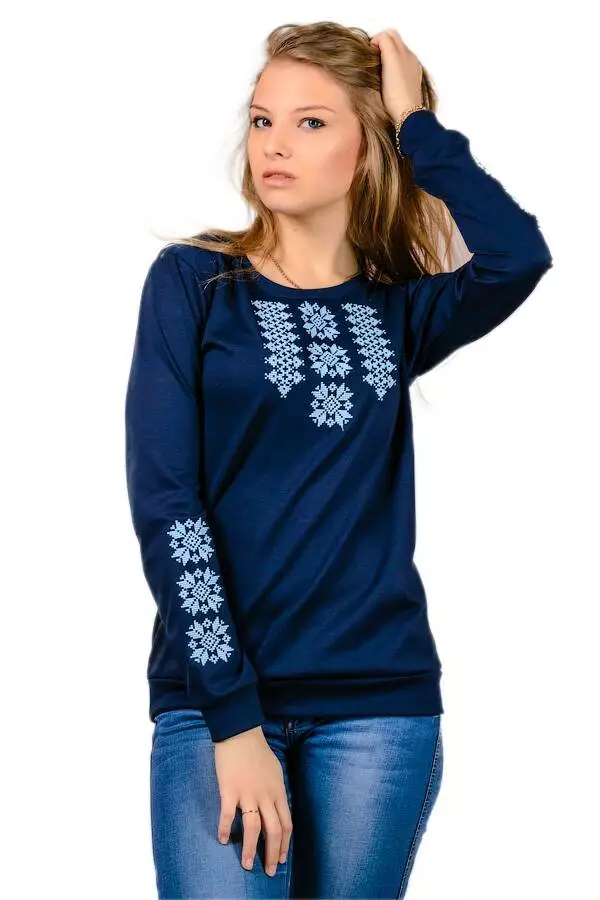 Трикотажний світшот-вишиванка прикрашений справжньою якісною машинною вишивкою хрестиком. Рукав - довгий на манжеті, низ світшота - на манжеті.
