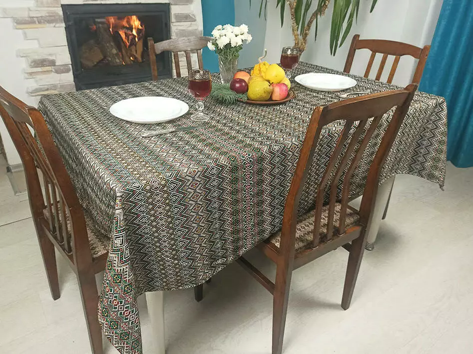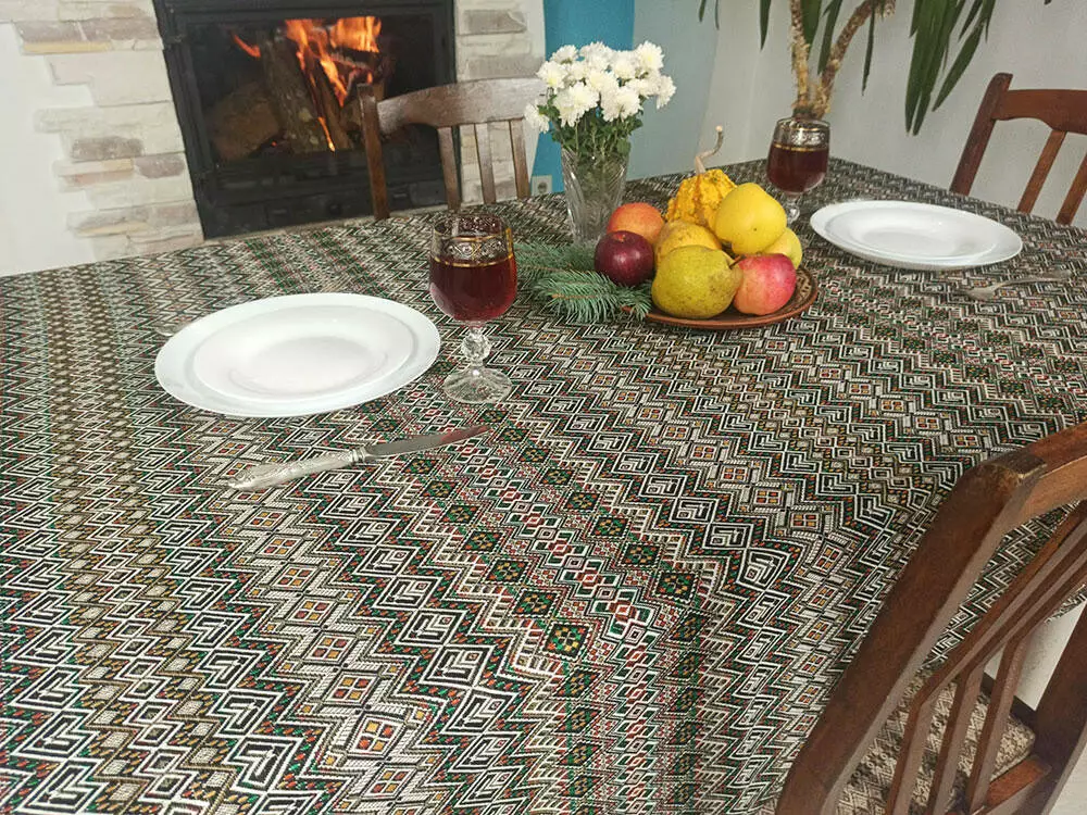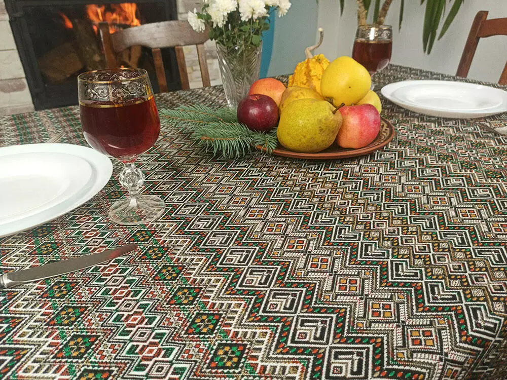 Святкова скатертина ткана з орнаментом 180х145 см, + 6 серветок