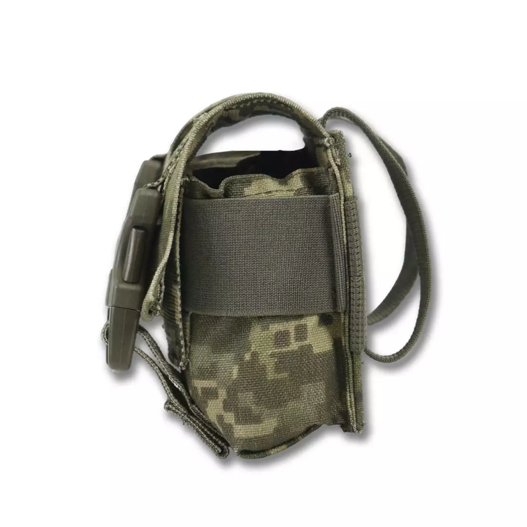 На боковых стенках внутри подсумок имеет дополнительную стропу для фиксации гранаты.
