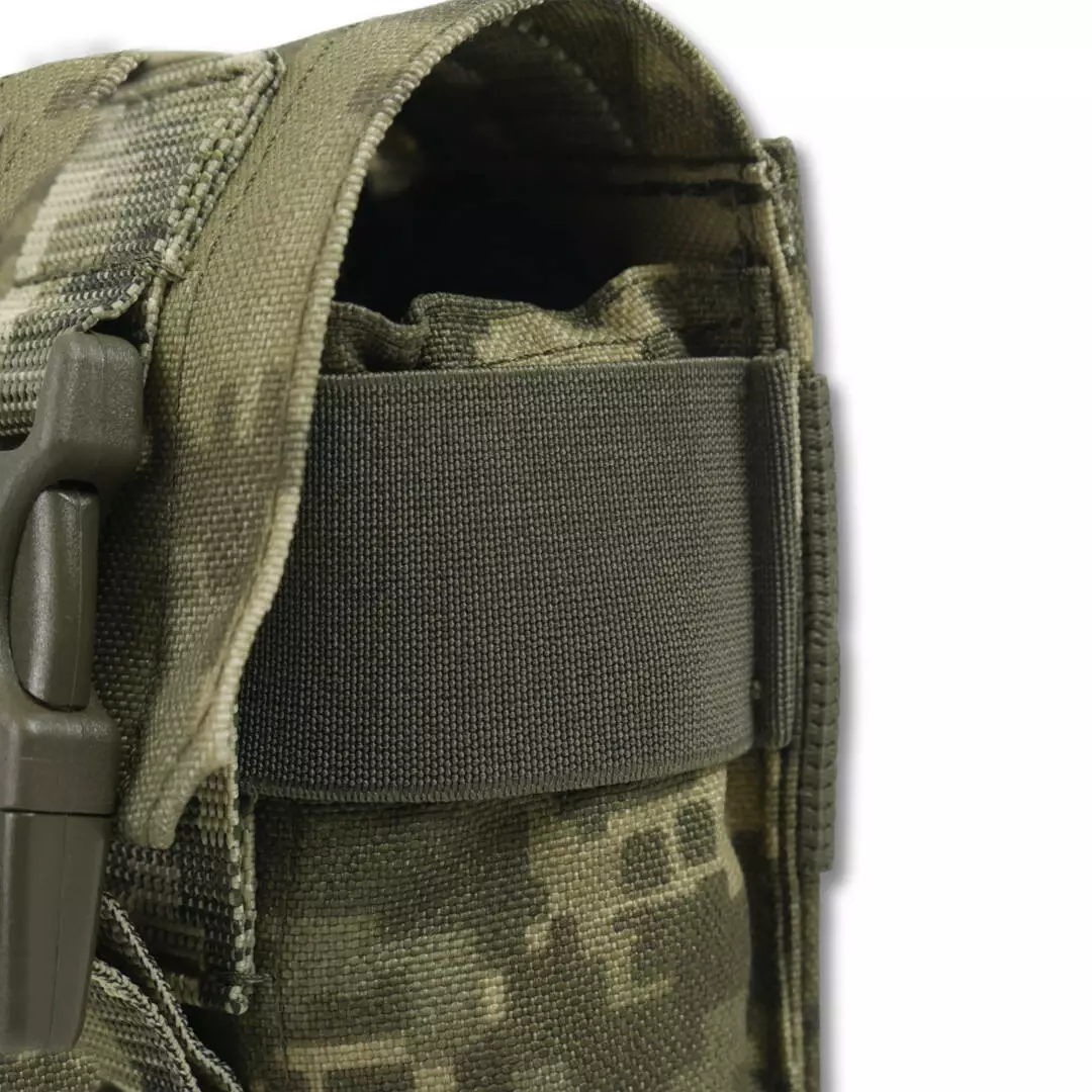 Два верхних клапана подсумка имеют дополнительное внутреннее усиление для держания формы подсумка и лучшей фиксации гранат при быстром передвижении.