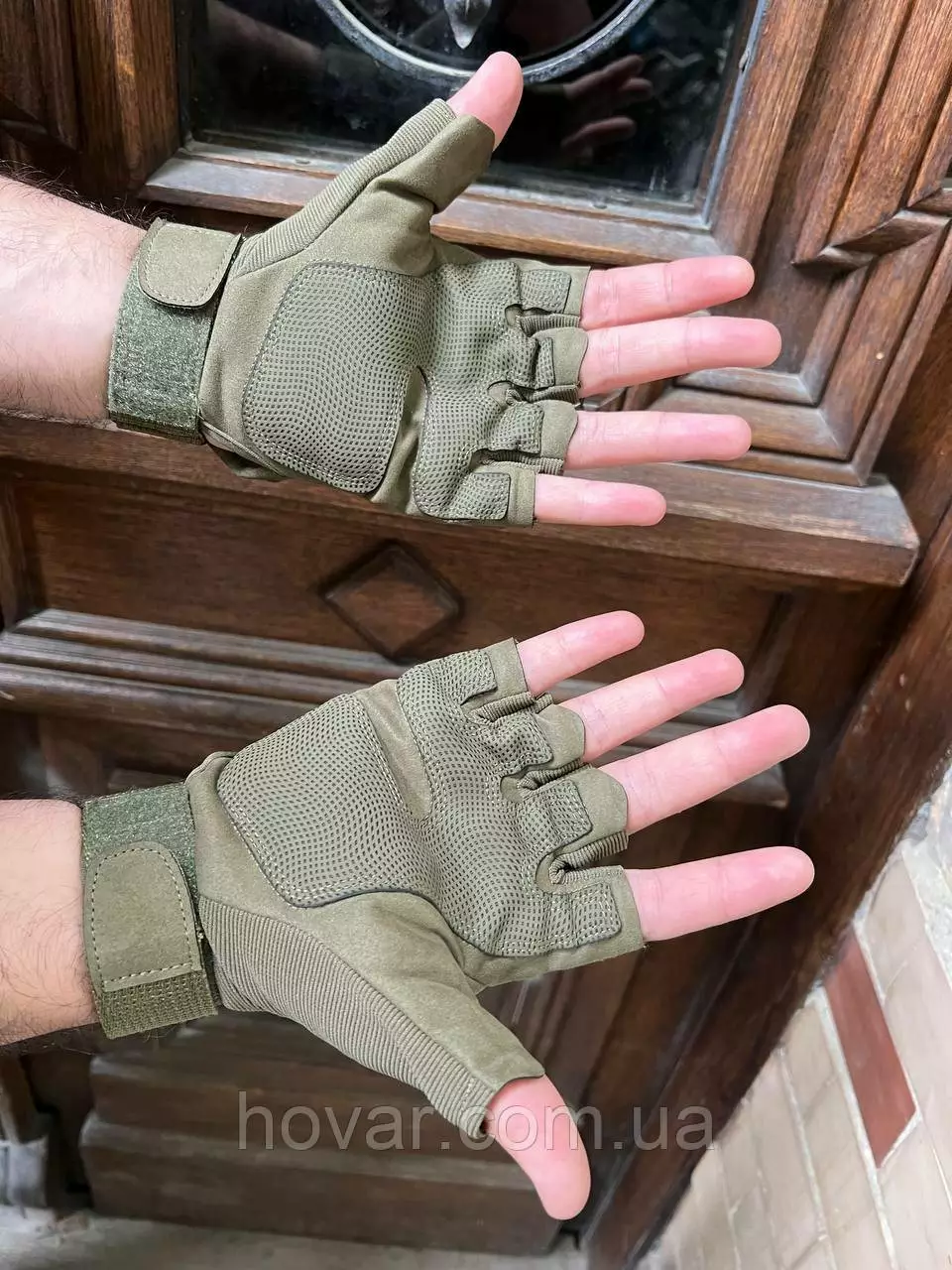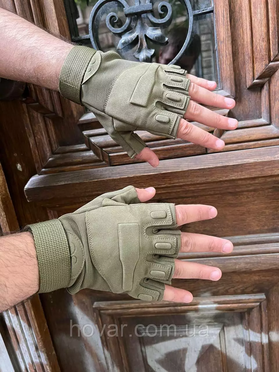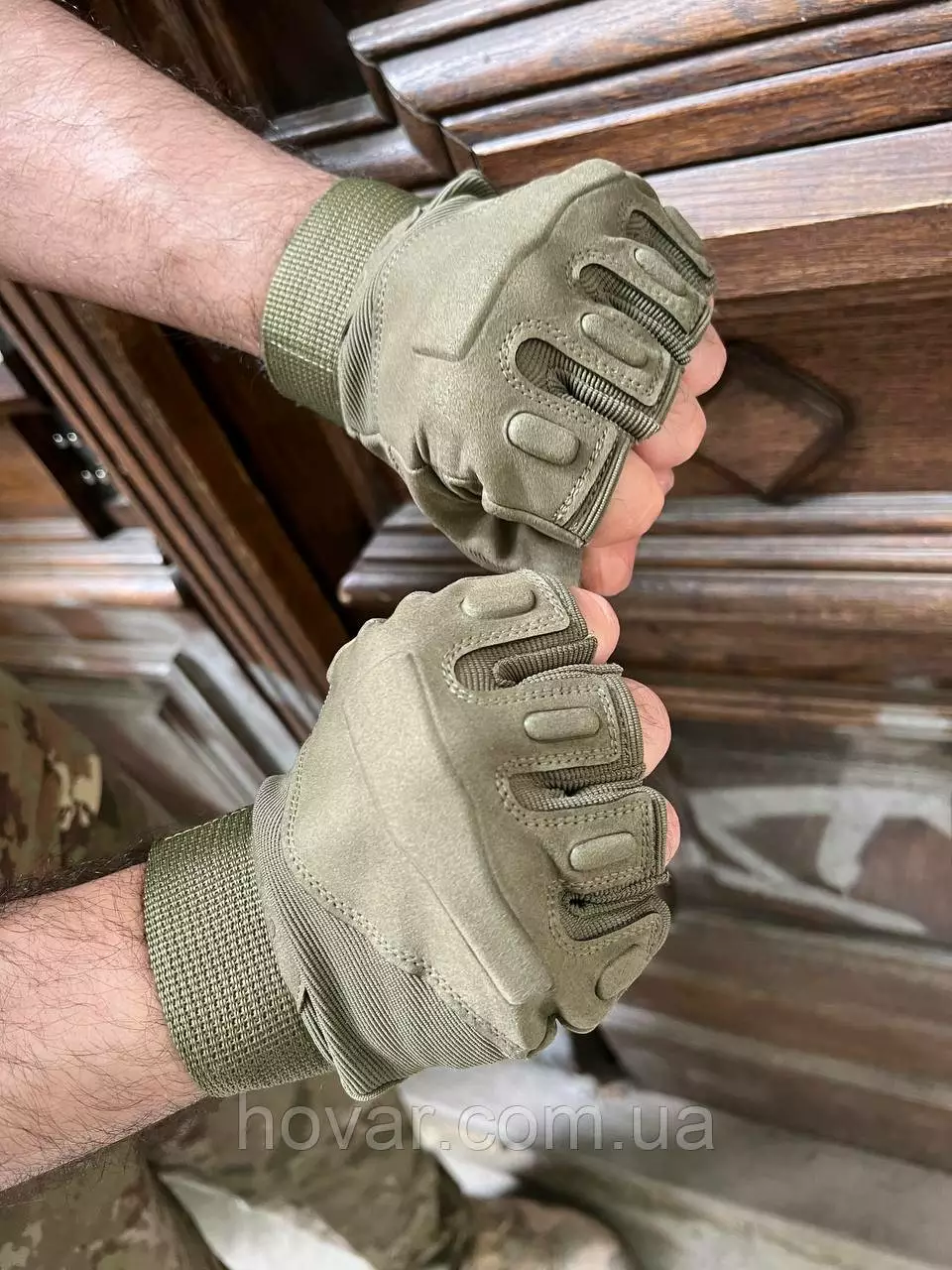 Захисні рукавички військові виконані з легких еластичних матеріалів – замші та текстилю. Легко піддаються очищенню та швидко сохнуть. Рукавички не обтяжують і не сковують руки. З лицьового боку та в області кісточок пальців вшиті м'які пластини для пом'якшення ударів та захисту.