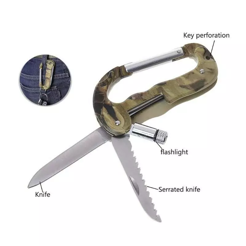 Тактический Нож Traveler Кемпинг, Альпинистский Карабин, Крюк, LED фонарик ???? A-08