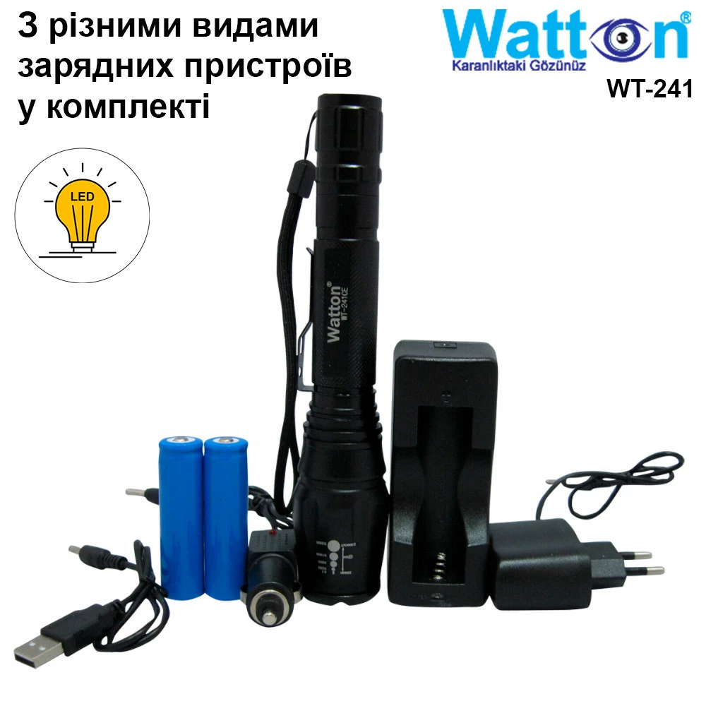 Комплектація: Ліхтарик, Авто і звичайний зарядний кабель, 2